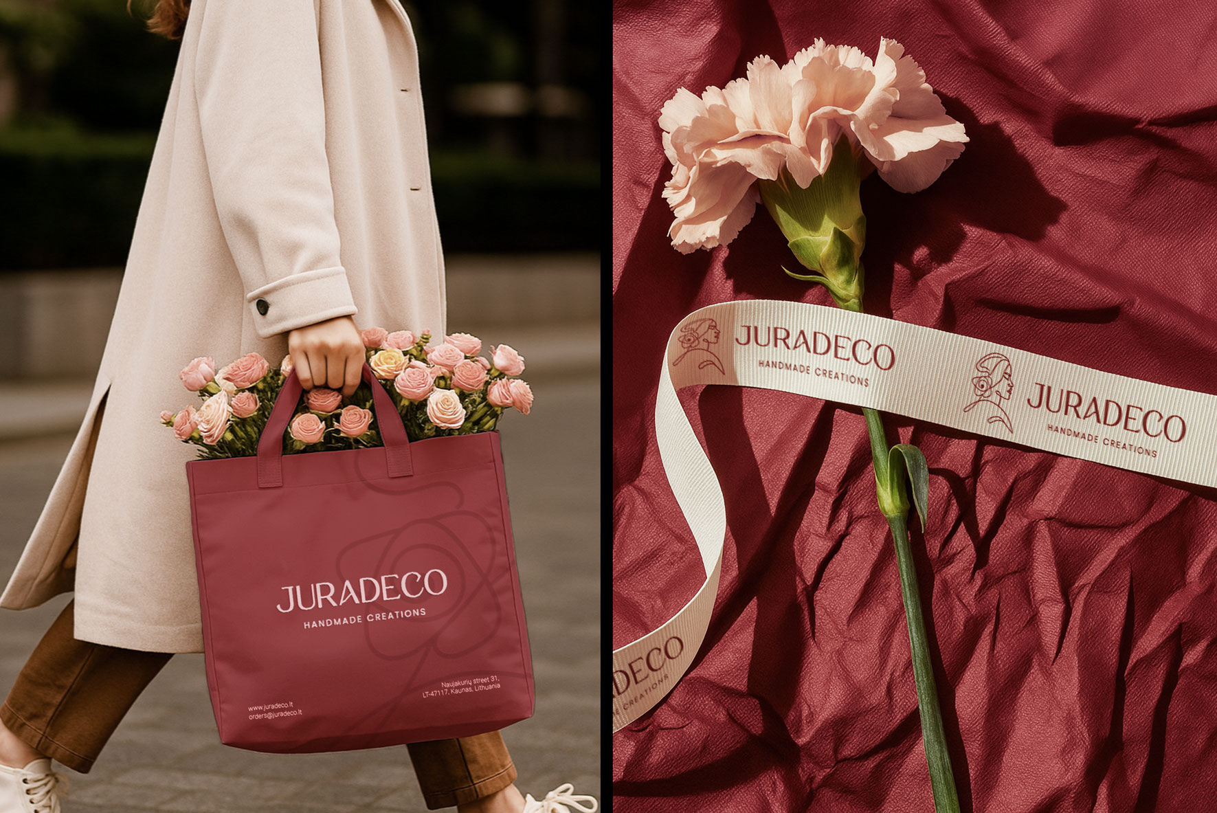 „Juradeco” is a brand founded by a passionate creator who handcrafts floral compositions and personalized gifts, each made with care and attention to detail. Inspired by her love for nature and meaningful moments, she began creating pieces that could bring warmth and personality into people’s homes. With growing interest and plans to launch an Etsy shop, she reached out to me to develop a brand identity that would authentically reflect her values – elegance, creativity, and the intimate, handmade nature of her products.